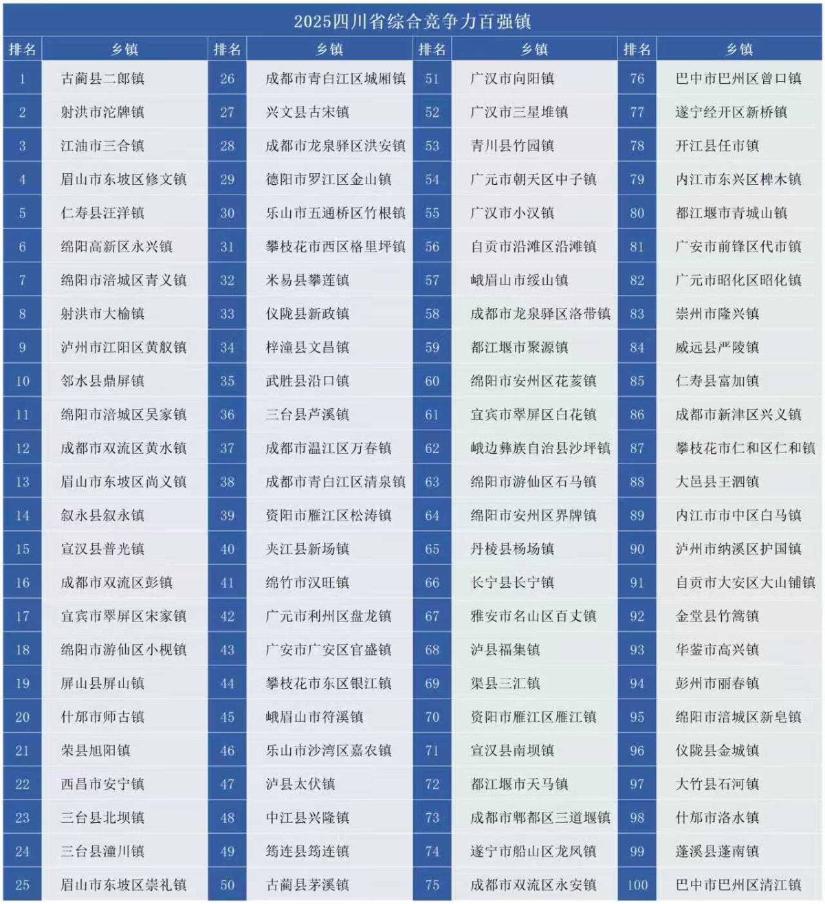 (来源:《四川省乡镇综合竞争力报告2025》在京发布——中国新闻网)