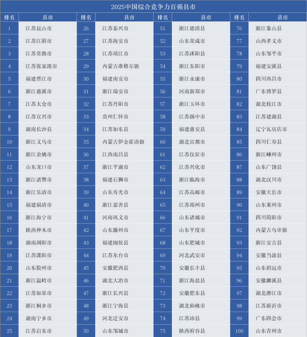 来源:《中国县域发展监测报告2025》在北京发布 百强县市、区名单揭晓——新华社