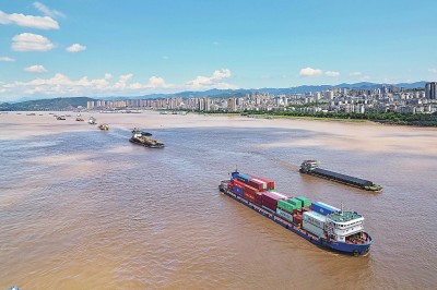长江和嘉陵江汇合形成的两江四岸“长嘉汇城市会客厅”,是重庆6张城市功能新名片之一。位于城市会客厅中心的朝天门广场上,有一个直径1.5厘米的点,这就是重庆公路的“零公里”处。
