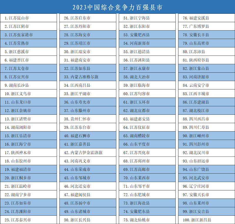 《中国县域发展监测报告2023》发布 中国百强县、百强区名单揭晓