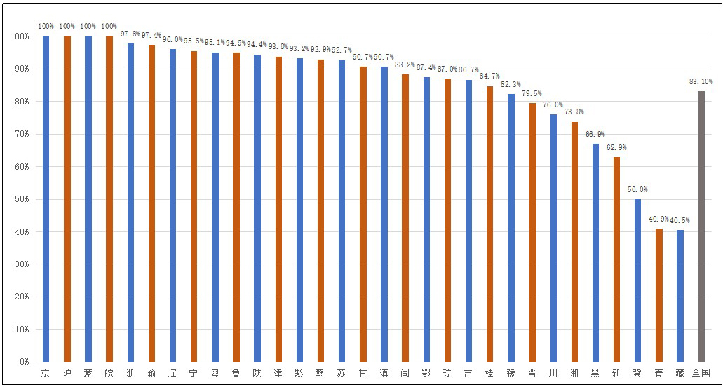 图1 各省份2020年县级以上政府工作报告有效公开率