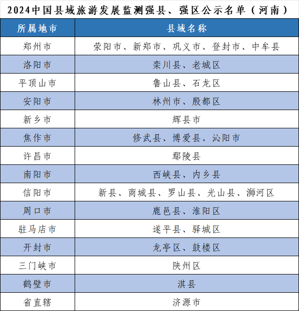 截至2023年底,河南省有县级行政单位(含市辖区)157个。其中,市辖区54个、县级市21个、县82个。河南省纳入2024(第七届)中国县域旅游发展监测的强县共23个、强区9个,占全省县级行政单位总数的20%;公示如下: