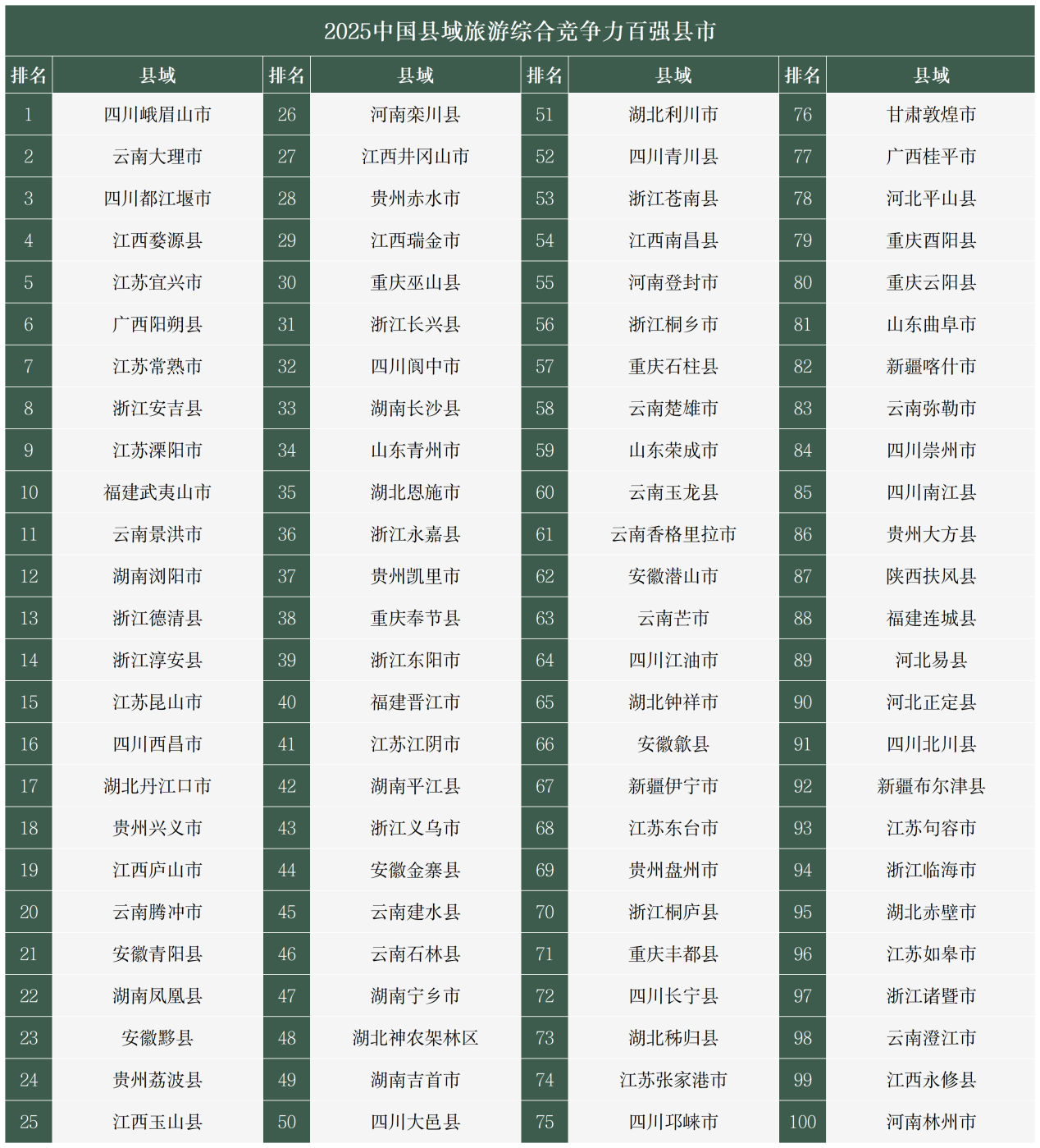 《中国县域旅游竞争力报告2025》在京发布 中国旅游百强县、百强区名单揭晓